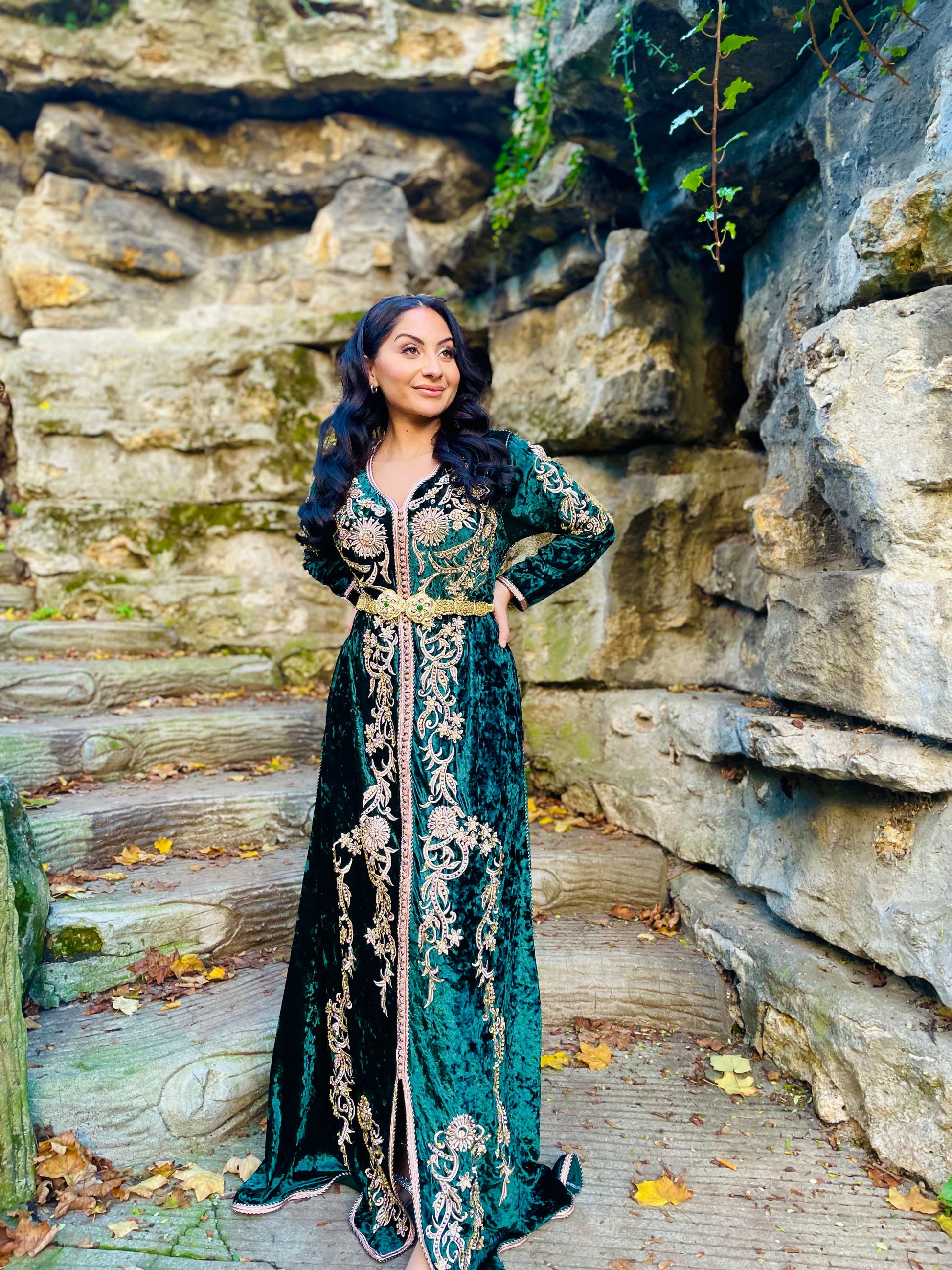 CAFTAN DOUNIA VELOURS VERT
